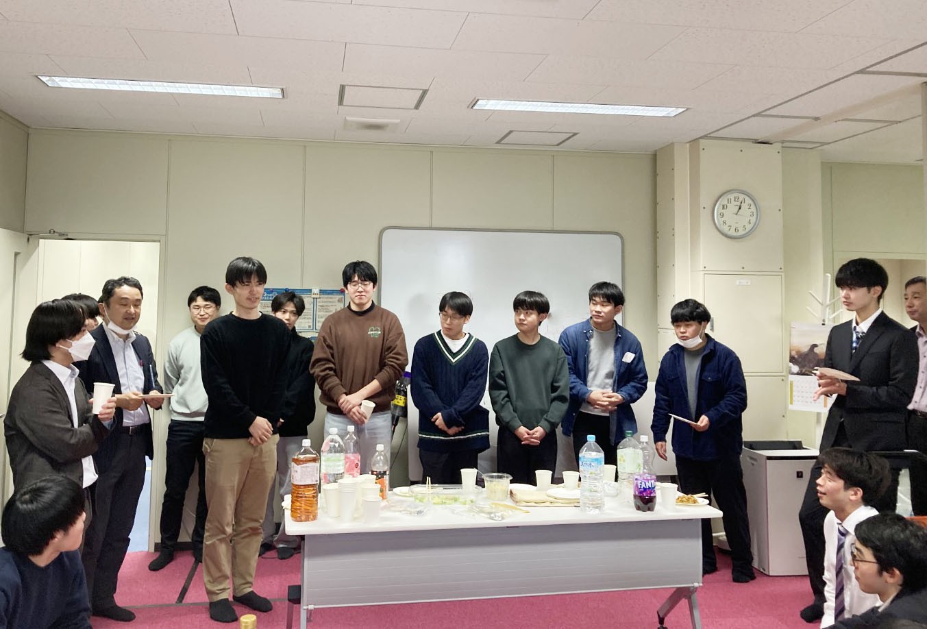 2026年2月24日 / 最終更新日時 : 2026年2月24日 es5 Lab News 卒業生追い出しコンパを行いました(2026.2.16) 2.12は修論審査会、2.16は卒論発表会でした。今年は趣向を変え、研究室にてピザや焼きそば、餃子を囲みながら、修論・卒論お疲れ様会と追い出しコンパを開催しました。 審査会・発表会を乗り越えたM2・B4の皆さんからは、先生方への感謝の言葉や研究の振り返り、そして卒業後の進路への思いが語られ、温かくも感慨深いひとときとなりました。 卒業まで残り1か月余り。短くなった研究室での日々を、どうか楽しんで過ごしてください。
